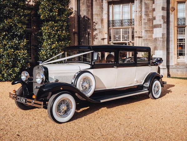 One of our 2 traditional vintage-style wedding cars. Based on the Ford Model 'A' from the 1920's, and finished in ivory and black with cream interior, this bespoke hand-built vehicle has been made especially with the wedding industry in mind. Daisy has a spacious interior, with conference seating in the rear, comfortably seating 4 or 5 passengers. The hood at the back of the car can be lowered in good weather, making a fantastic photo opportunity, but can be raised up again within seconds if the weather suddenly turns. You never know with our unpredictable English weather!! Daisy can be hired on her own or teamed up with one of our other matching cars, depending on how many passengers there are in the bridal party. At Somerset Wedding Cars, we are committed to providing our customers with the highest quality car rental services at affordable prices. Our goal is to make renting a car as easy and stress-free as possible, so you can focus on enjoying your special day.